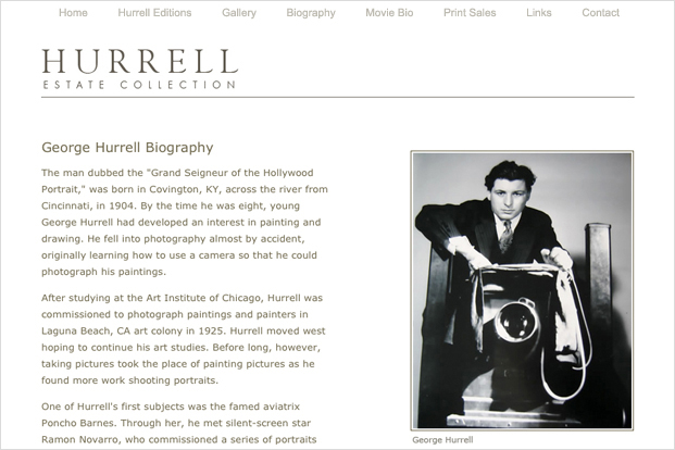 DESCRIPTION Gallery of selected photographs from the estate of George Hurrell, one of Hollywood's most celebrated glamour photographers. An exceptional site for its beautifully digitized images.